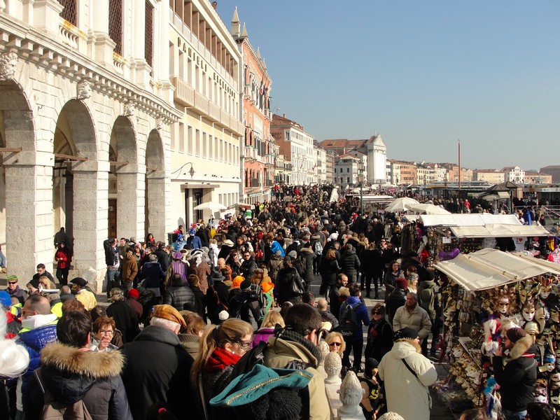 Фактически туризм приносит денежные реки в Италию. Но взамен он приносит огромный ущерб культурному наследию страны. Каждый год Венеция наводняется туристами в пределах 30 миллионов человек. А это — половина населения Италии. Само собой разумеется, такое количество людей создает трудности при перемещении на улицах: многочисленные толпы мешают движению пешеходов, а многие гости еще и предпочитают отдыхать, ложась то на ступени венецианских церквей, то на мостах. Что, в свою очередь, создает импровизированные полосы препятствий.