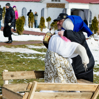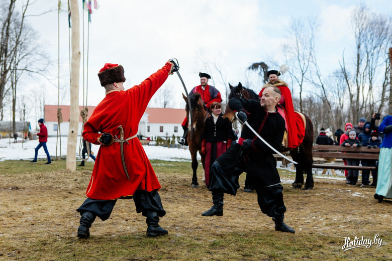 На прошлых выходных, 25-26 февраля, белорусы массово прощались с зимой: по всей стране жглись чучела, елись блинцы, да кликалась весна. Мы тоже на одном из таких праздников были, видели, как большую смаженку жарили на костре, на столб высокий мужики залазили, да танцы старажытныя женщины танцевали. И вы посмотрите.