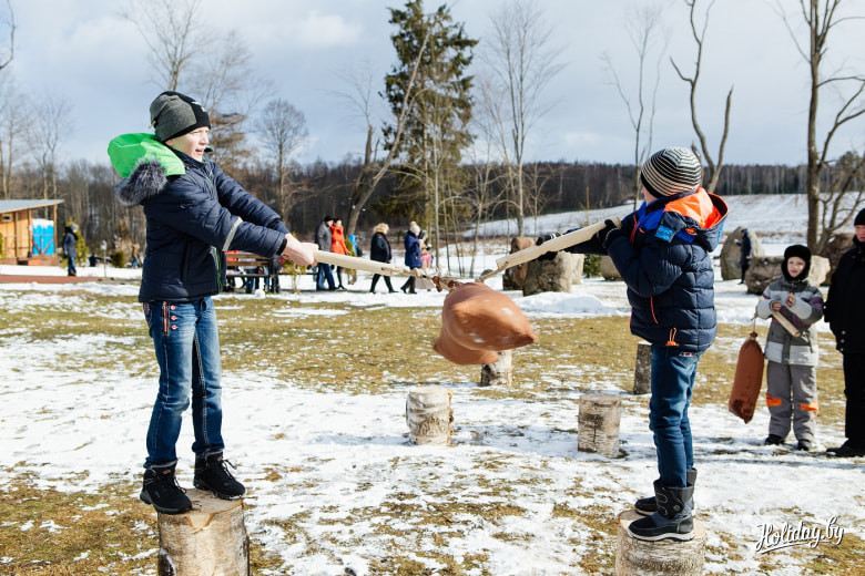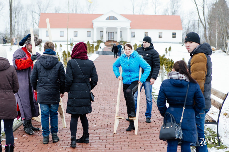 В старину на большой высокий столб вешали валенки, и тот хлопец, что достанет их, считался самым сильным на селе. Сейчас развлечение немного осовременили: на столб посели не валенки, а маленькие дощечки, снимая которые, гость получал съедобный приз.