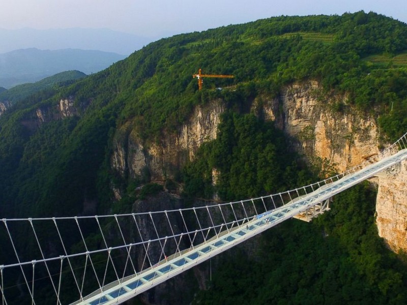 Самый высокий и самый длинный мост в мире находится в Китае. Конструкция длиной 430 метров и 6 метров в ширину расположилась в национальном парке Чжанцзяцзе. Мост возносится над землей на высоту 260 метров и соединяет скалы местности, знаменитой по съемкам «Аватара». Строительство обошлось стране в 3,4 миллиона долларов. Сразу после открытия мост подвергся неконтролируемому наплыву туристов, так что новую достопримечательность пришлось закрыть. После этого сооружение снова открыли для посетителей, и оно является одним из популярнейших туристических объектов.