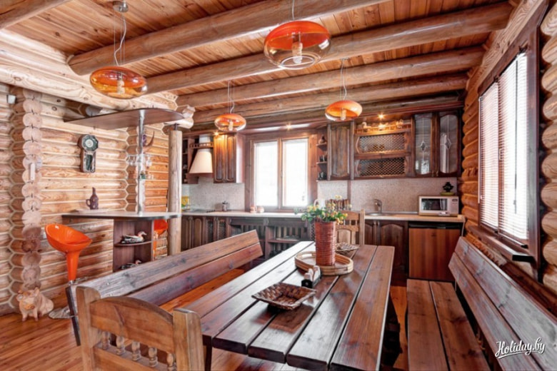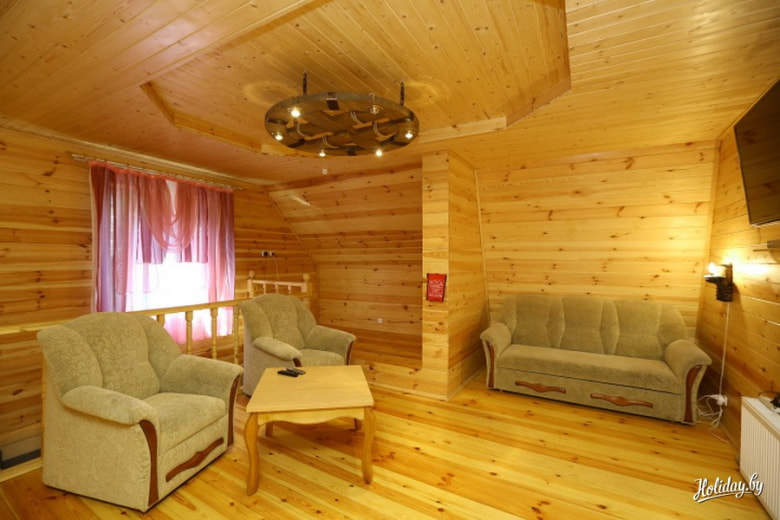 Усадьба «Неманский куток» – это действительно экологически чистое место: дом сделан из древесины – снаружи и внутри, в оформлении интерьера использована натуральная кожа, на окнах – деревянные бамбуковые жалюзи. Бильярд, камин, настольный теннис, караоке – скучать времени не будет. Здесь можно не только отдохнуть, но и провести тренинг или семинар. Приятным дополнением к программе станет поездка на экскурсию – до Несвижского и Мирского замков тут рукой подать.