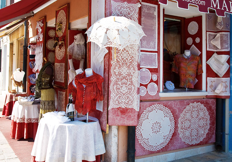 Хочешь быть оригинальным и практичным – посмотри изделия из муранского стекла (особенно бижутерию, она невероятная) или аксессуары, элементы декора из бисера. Очень красивые кружева из Бурано – небольшого острова в Венецианской лагуне, который славится своим производством кружевных изделий.