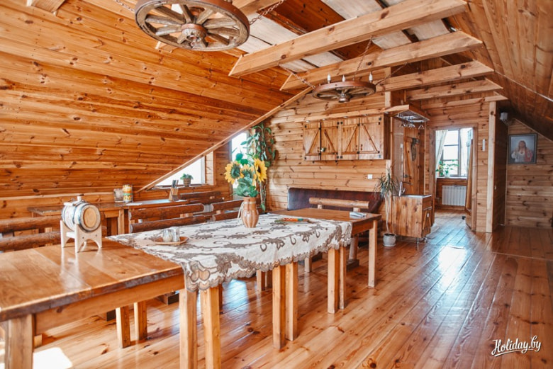 Усадьба «Неманский куток» – это действительно экологически чистое место: дом сделан из древесины – снаружи и внутри, в оформлении интерьера использована натуральная кожа, на окнах – деревянные бамбуковые жалюзи. Бильярд, камин, настольный теннис, караоке – скучать времени не будет. Здесь можно не только отдохнуть, но и провести тренинг или семинар. Приятным дополнением к программе станет поездка на экскурсию – до Несвижского и Мирского замков тут рукой подать.