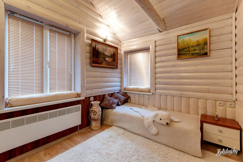 Фишка места – близость к столице: всего три километра от МКАД. Коттедж стоит на берегу реки Свислочь, в окружении леса. Так что, просыпаясь, гости не слышат шума машин и соседской дрели. В аренду сдается второй этаж, он отлично подойдет для семейного отдыха и небольших дружеских компаний: всего в коттедже смогут отдыхать до 12 человек, до 8 с ночевкой. Есть кухня и вся необходимая для приготовления еды техника.
