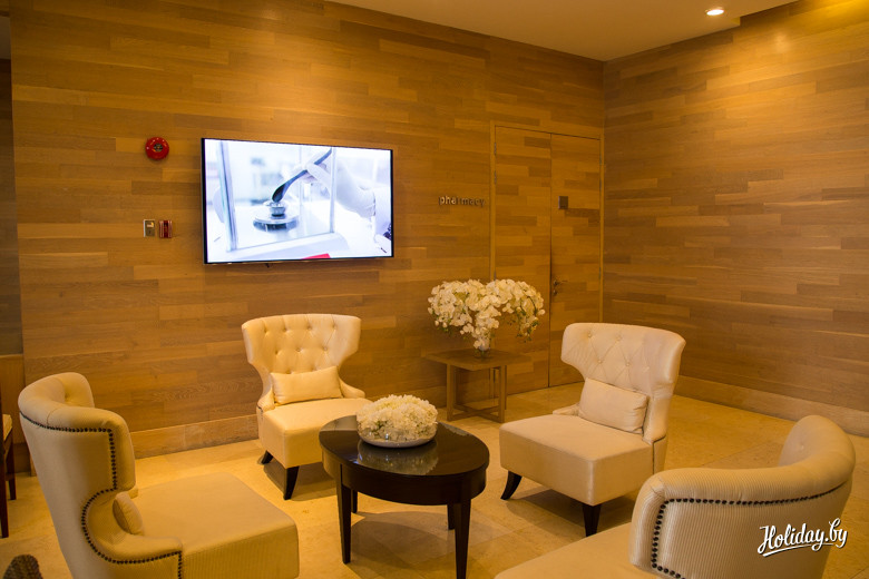 Акцент в TRIA сделан именно на медицинских процедурах и исповедуют тут научный подход к вопросу оздоровления. Кабинеты, залы, зоны отдыха располагают к комфортному пребыванию, несмотря на то, что за окном солнце палит под сорок градусов. Высокий уровень обслуживания подчёркивается в деталях. Например, такая мелочь, как аптека. Не «больной» идет в аптеку, а провизор выходит в просторный холл, чтобы побеседовать с клиентом и его врачом, а затем принести нужные лекарства.