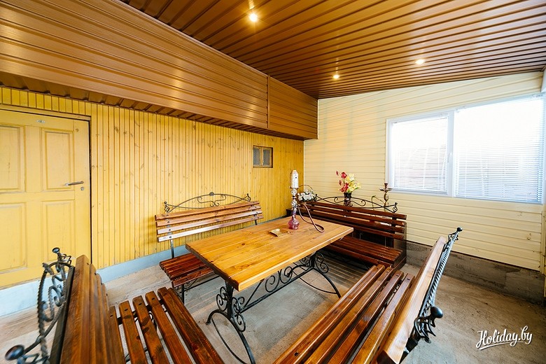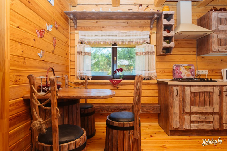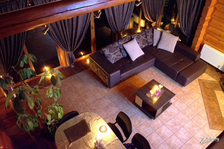 Усадьба расположена всего в пяти километрах от Минска. Главной ее фишкой, как видно из названия, является просторная русская баня, в парилке которой может уместиться около восьми человек.