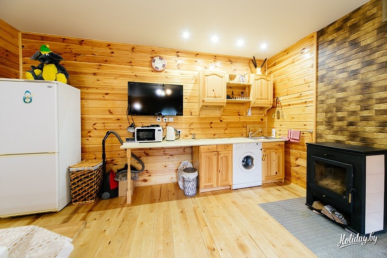 Место идеально тем, что находится всего в 19 километрах от Минска, но при этом там очень тихо и спокойно. Все потому, что агроусадьба стоит в окружении леса. Всего в местечке два дома: гостевой и домик с баней. В обоих коттеджах есть все, что нужно для хороших и комфортных выходных: телевизор, спутниковое TV, DVD-проигрыватель, душ.