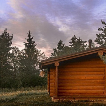 Домики идеально подойдут для небольшой компании (если вас, скажем, четверо или пятеро). Один формально жилой: со стильной белой мебелью, кухней с барной стойкой. Прямо из окна шикарный вид на озеро. Второй — с русской баней, душевой.