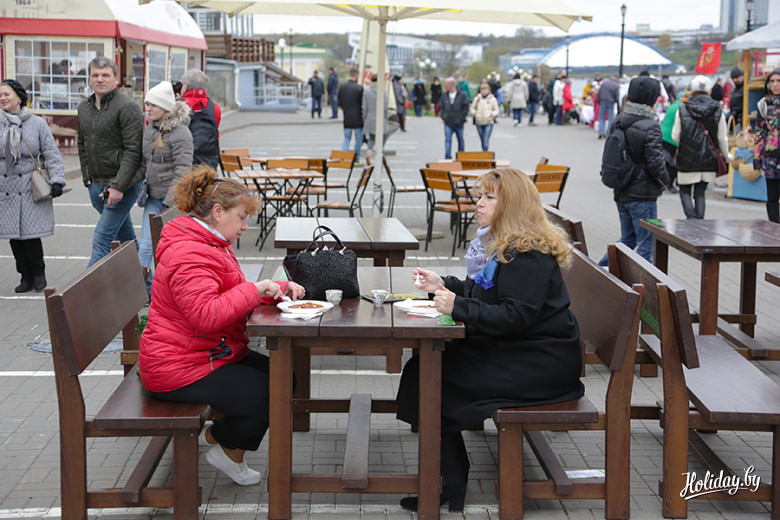 Верхний город. Привычная локация практически для всех городских мероприятий. С одного взгляда сложно понять, то ли ты на празднике белорусской культуры, то ли на фестивале моды, то ли люди просто вышли погулять по центру в выходной. Все как обычно: концертная площадка, не слишком многолюдная толпа с детьми (весь день дождило), павильоны ремесленников, шашлыки.