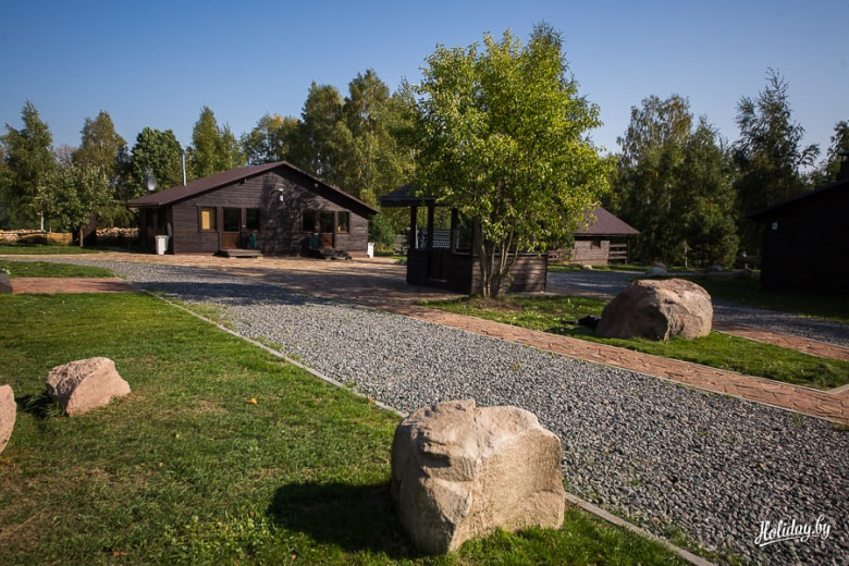 Современные домики на берегу Березины. В каждом собственная кухня и бытовая техника, TV, караоке, санузлы с душем и тёплыми полами. Если не намерены охотится и рыбачить, можно просто гулять по окрестностям в поисках настоящих зубров, посмотреть, как живут эти животные в диких условиях. Здесь зубры не редкость и очень часто выходят на встречу с человеком, покрасоваться или поздороваться.