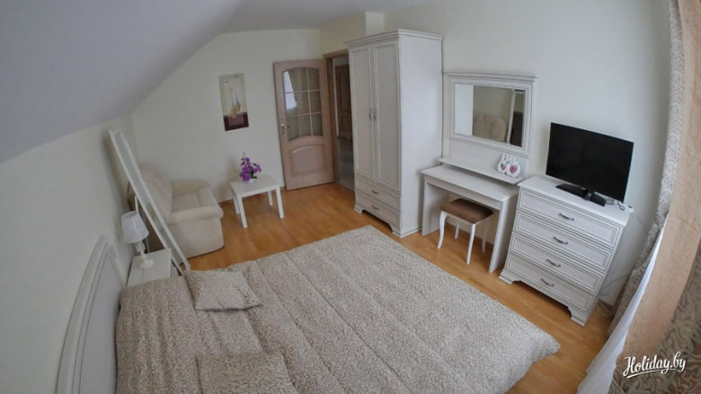 Роскошный коттедж в черте Минска привлекает энергичные компании и ценителей отдыха класса люкс. Комнаты выдержаны в классическом стиле, в каждом номере стоят джакузи, но, если предпочитаете купаться в компании, к вашим услугам шикарная сауна и бассейн.