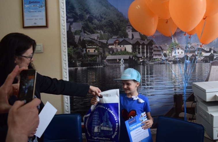 Главный приз - скидочный сертификат на сумму 150 у.е. на покупку любого тура от "ТурТрансРу" - и набор фирменных сувениров получила наша самая юная победительница - Ярослава Пырикова. Публикация, сделанная ее мамой, была признана абсолютным победителем конкурса.