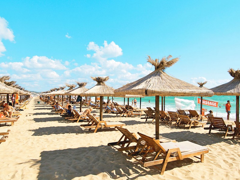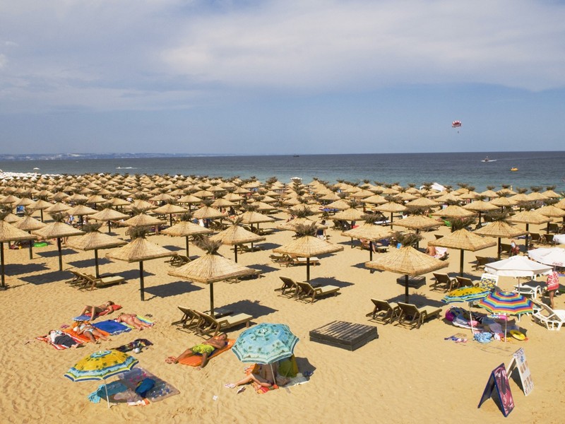 Название курорта вселяет в туриста большие надежды, и не зря: солнце светит здесь практически весь курортный сезон, а дожди случаются весьма редко. Десятикилометровый пляж Солнечного Берега — обладатель Голубого флага.