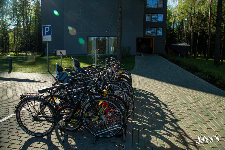 Перед отелем находится детская площадка с мягким покрытием, парковка для велосипедов, сдающихся на прокат. К слову, в «СПА Вильнюс Аникщяй» практикуют недели только для взрослых. За ними лучше следить на сайте комплекса. В эти дни на территории отеля будет только взрослая публика. Внимание привлекают две деревянные беседки.