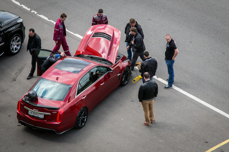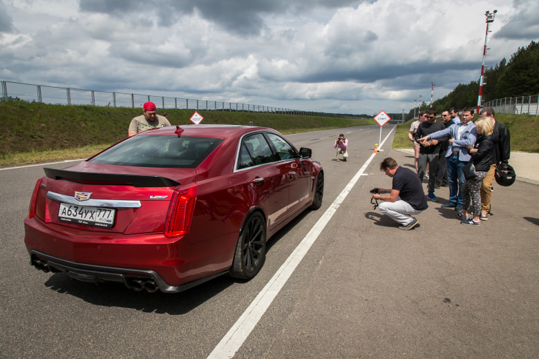 В этот момент я обычно даю советы, куда съездить на собственном автомобиле. В случае Cadillac CTS-V - прямая дорога на гоночный трек и исключительно через курсы существенного повышения водительского мастерства. Я хочу поблагодарить минский автоцентр "Мультимоторс" за возможность прикоснуться к миру люксовых гоночных автомобилей