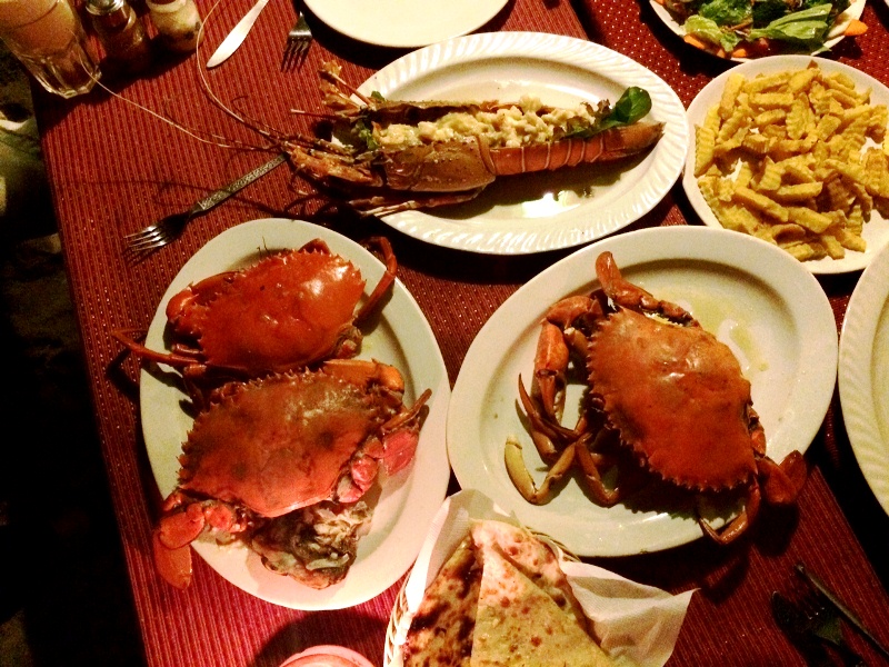 Иван: Ну и, плюс к этому, в кафе, где мы часто бывали, нам рекомендовали заказывать морепродукты с вечера. Потому что утром персонал кафе закупался свежей рыбой, крабами, лобстерами и другими морепродуктами. Поэтому частенько я приходил на завтрак и видел ещё свой «живой ужин». И цены в кафе были вполне адекватными.