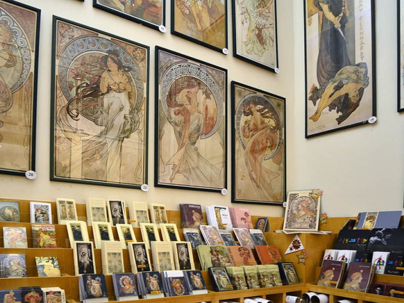 Первый из них - это музей художника Альфонса Мухи, расположенный в районе станции метро Мустек. Сам музей не большой, он не отнимет много времени, но посетить его точно стоит. Потому что главный модерн в Праге делает именно он. В нескольких залах представляют работы художника. Там же — его подробная биография, очень интересно изложенная в фотографиях из жизни, предметах интерьера, которые его окружали, рабочих инструментах, которые помогали ему творить. В музее можно заказать экскурсию на русском языке.