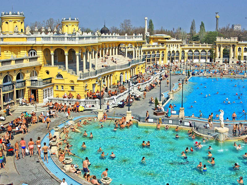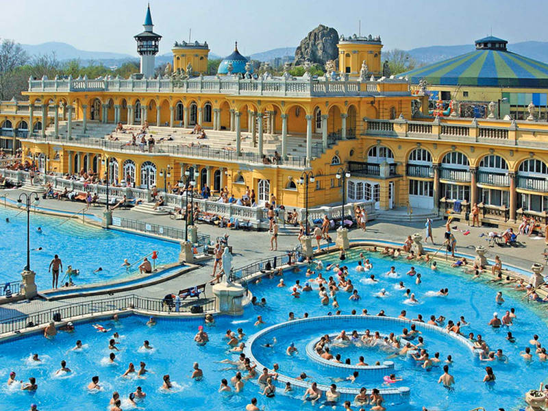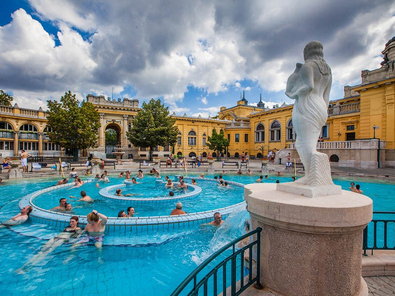 Столица Венгрии приобрела славу города купален благодаря своему расположению на термальных водах. Целебными свойствами этих минеральных источников люди пользовались еще во времена императорского Рима. Сегодня термальные купальни Будапешта известны во всем мире. Всего в Будапеште 27 купален, половина из них обладает лечебным эффектом. Это значит, что вода, насыщенная полезными компонентами, используется не только для купания, но и для питья. Самая большая и популярная из купален — Сечени.