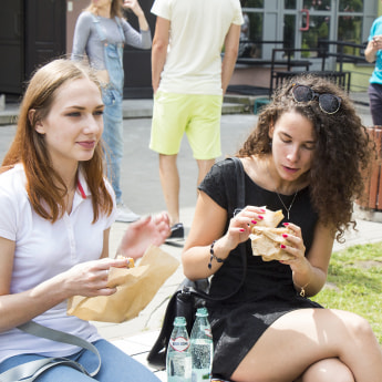 Эти девушки берут с собой на работу еду из дома: котлеты, пюрешку, сейчас плов ―дети очень любят. Говорят, что так и вкуснее и для фигуры безопасней.