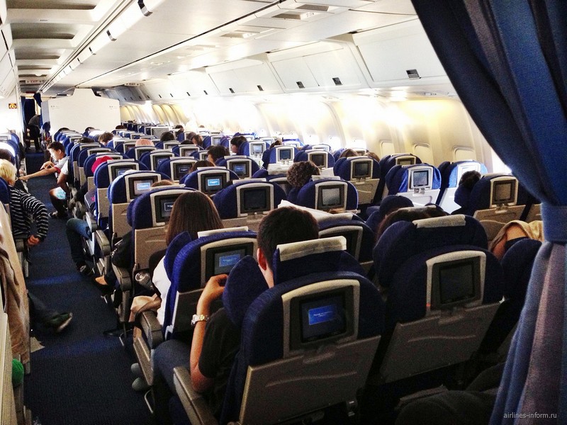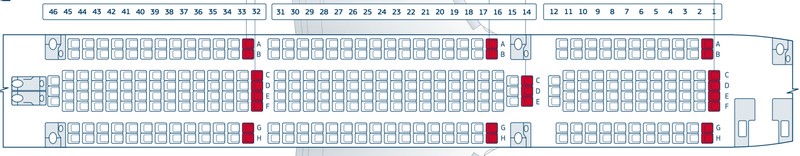 При этом 5-й ряд размещен достаточно близко к туалетам, что может по понятным причинам вызвать у пассажира некоторый дискомфорт. 11-й ряд, равно как и 27-й, также соседствует с санузлами, а перегородка, расположенная спереди, не позволяет вытянуть ноги, зато пассажир спереди не сможет помешать откинутой спинкой кресла. 25-й ряд, в свою очередь, способен принести неудобство из-за близости аварийных выходов и неоткидывающихся спинок кресел. И, наконец, последний ряд — не самый комфортный по причине близости к туалетам и кухне, спинки в нем также зафиксированы.