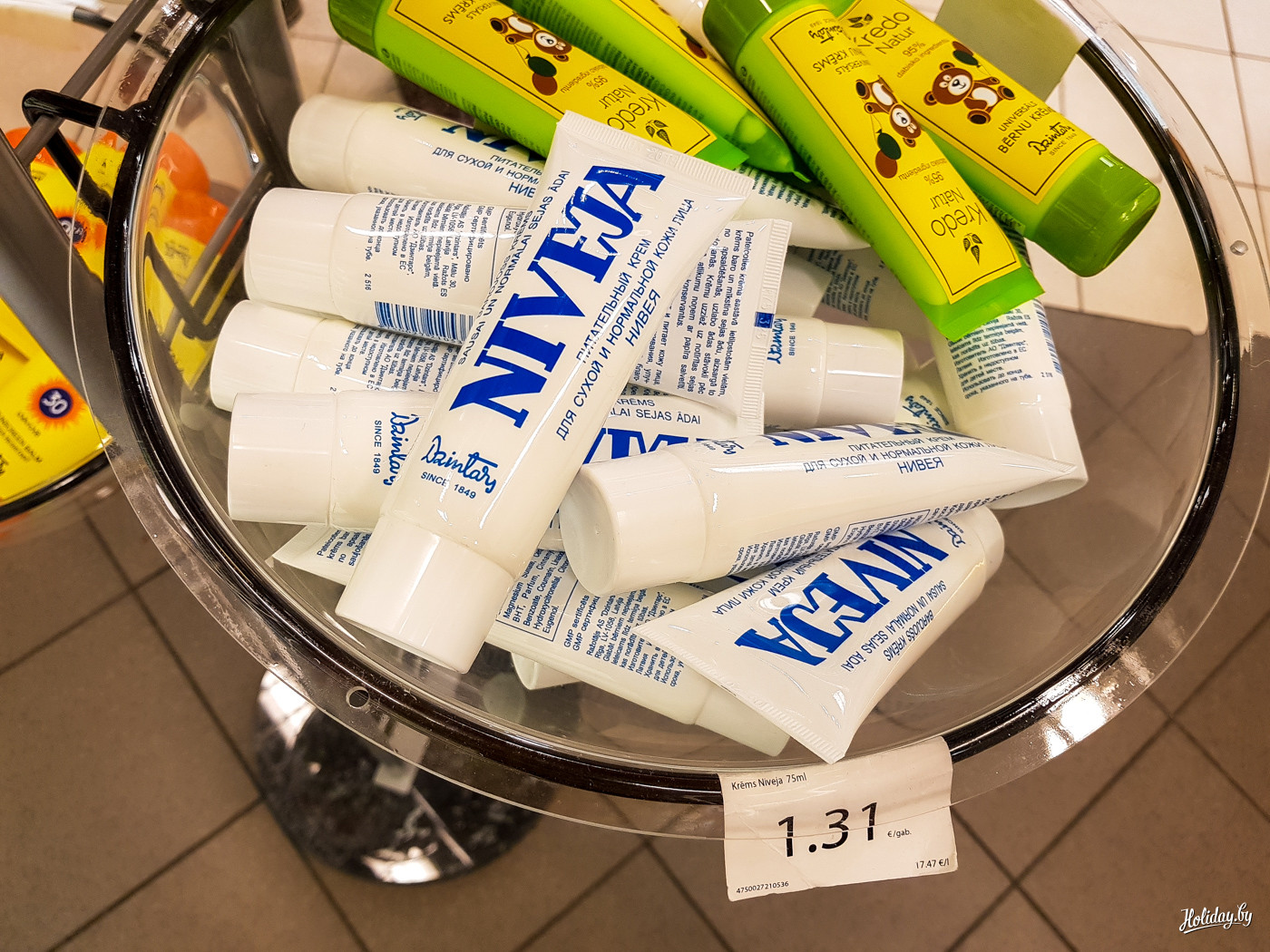В большом торговом центре Origo на первом этаже есть магазин легендарной латвийской марки Dzintars. Говорят, что когда фабрика была на грани банкротства, латыши стали чаще покупать местную косметику и тем самым вытащили предприятие из кризиса. Там можно найти не только парфюм, но и крем Niveja. От всемирно известного сегодня отличает одна лишь буква «j», но поговаривают, что именно эта в тюбике за евро – самая настоящая.