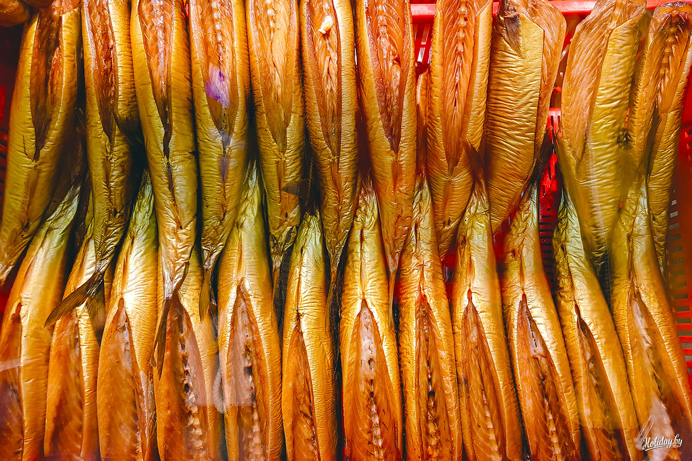 Нашей целью был первый из пяти павильонов – рыбный. До цели добирались через все ряды. Говорят, что тут на рынке одновременно открыто до трёх тысяч мест для торговли, а покупки совершает до 100 тысяч человек каждый день. Пройти мимо фермерских рядов не представляется возможным – различные засолки, домашние сыры всех мастей.