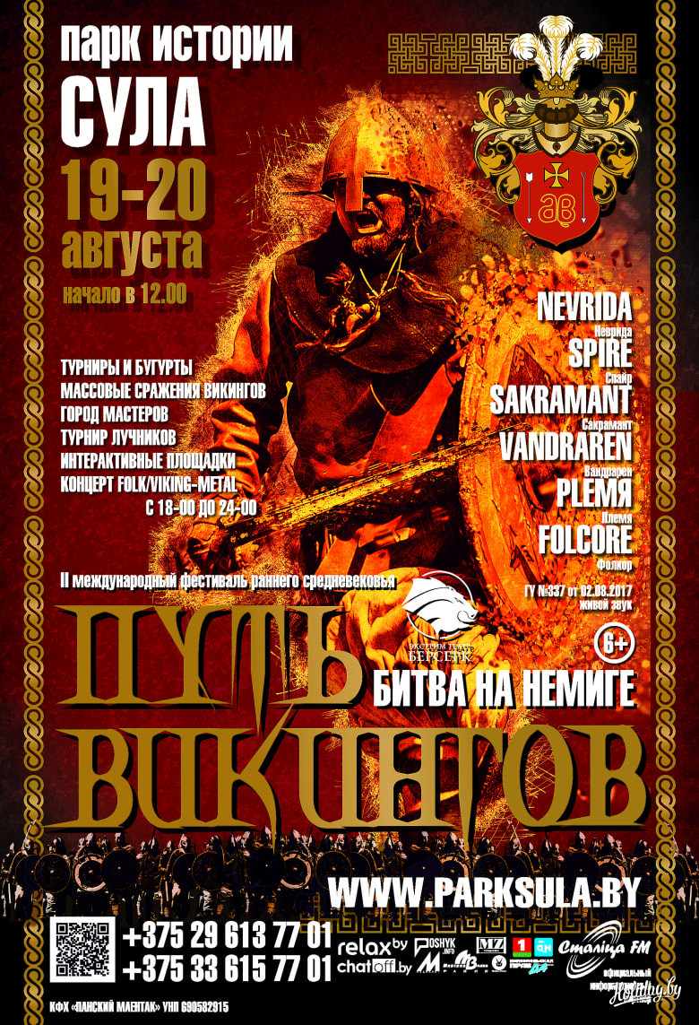 19-20 августа 2017 года на территории Парка-музея Интерактивной Истории «Сула» пройдет второй международный фестиваль раннего средневековья «Путь Викингов», посвященный эпохе легендарного торгового пути «из варяг в греки», который десять столетий назад связывал Балтийское море и Византийские земли и проходил по территории современной Беларуси. Центральным блоком этого года станут события предшествующие легендарной Битве на Немиге и сама битва.