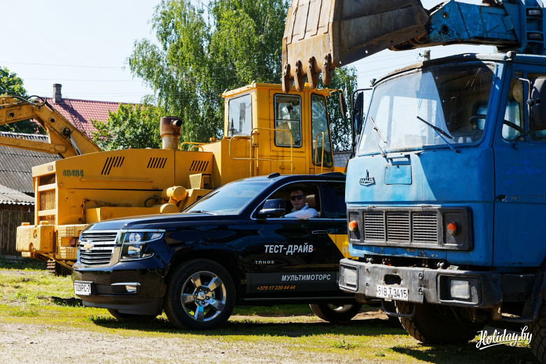 Огромный внедорожник, тёмные очки, пиджак странного цвета, деловой тон – примерно таков был рецепт открывания дверей в тот день. Так для фотосессии мы попали на территорию бывшего судоремонтного завода под Бобруйском, вызвав бурную деятельность с примесью острого любопытства у местных сотрудников разных нужных отделов. Трудно представить, что половина этих грузовиков вдвое слабее нашего гражданского Tahoe, если опять же всё измерять в лошадях.