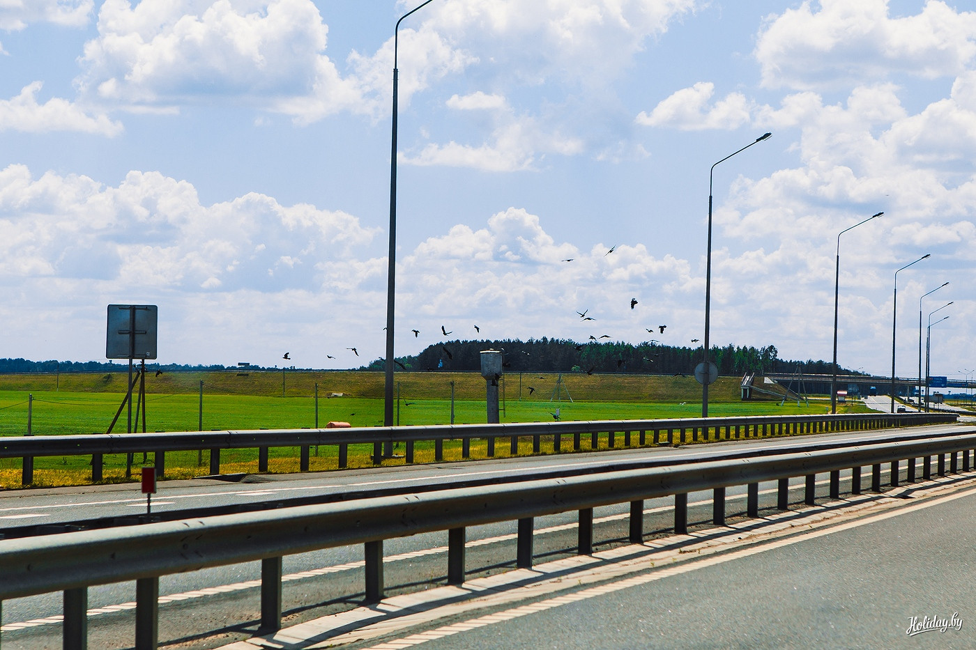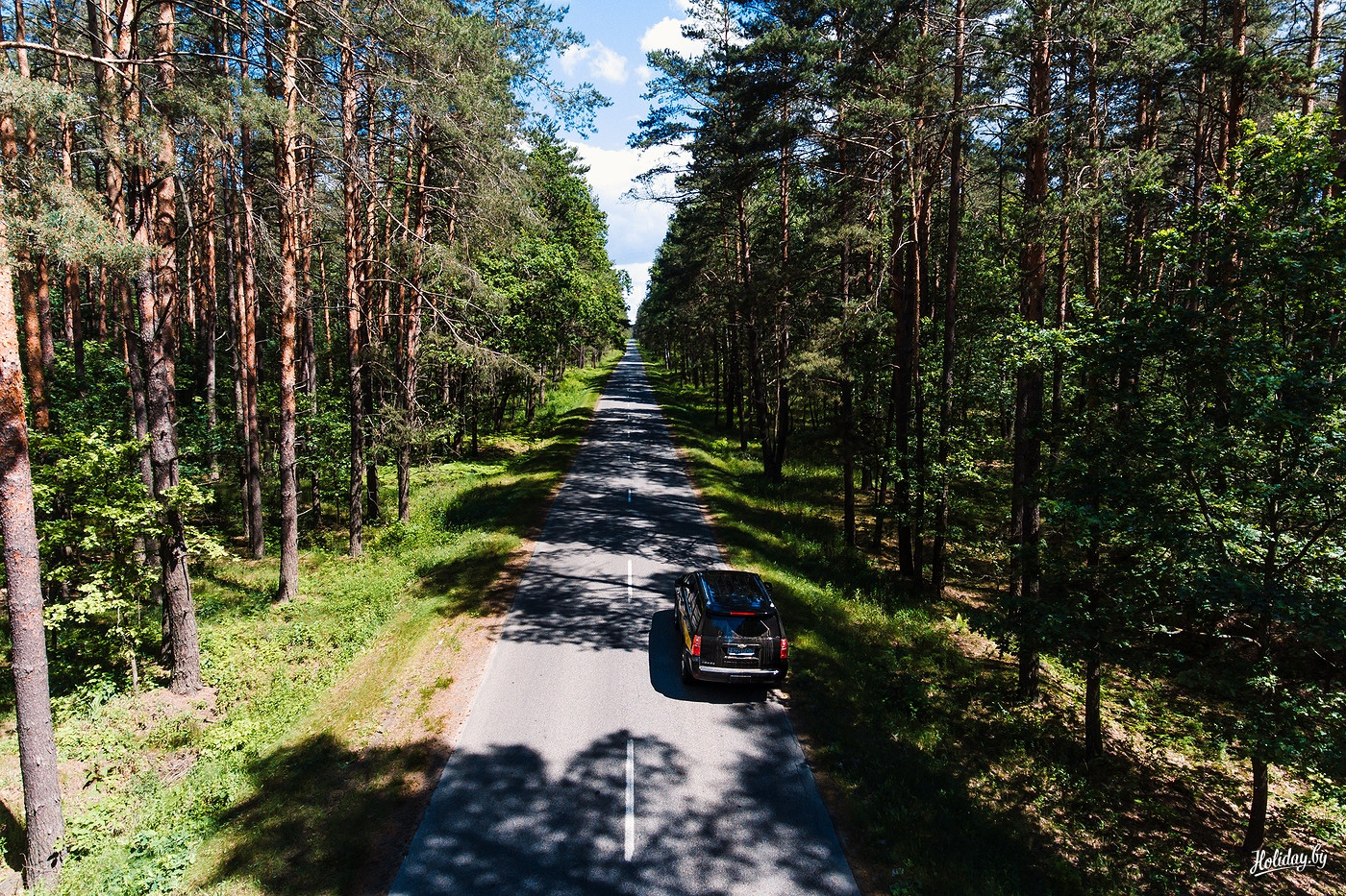 Возвращаюсь к маршруту. По планам проехать не менее 1500 километров через всю страну за два дня с остановками в самих основных точках и живописных местечках по дороге. Самое главное – проставить чек-ины в белорусских «однофамильцах» популярных туристических мест. На этот раз к команде присоединился фотограф Дмитрий Рыщук, который сделал все сочные фотографии с земли и воздуха. Не забыли мы и про нашего Дениску – оберег от ГАИ работает с каждой поездкой всё лучше и лучше, тьфу-тьфу.