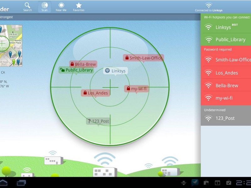 В такой ситуации на помощь придут приложения наподобие Wi-Fi Map или Wi-Fi finder, позволяющие искать пароли от точек беспроводных сетей. Паролями в программе обмениваются сами пользователи, так что интерактивная составляющая обеспечивает постоянное пополнение данных.
