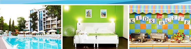 Апартотель расположен в центральной части курорта , среди пышной зелени национального парка Золотые пески , в 350 метрах от пляжа . Номерной фонд отеля представлен удобными для семейного отдыха номерами студио и апартаментами из двух комнат (все номера оборудованы кухонными уголками с плитой).