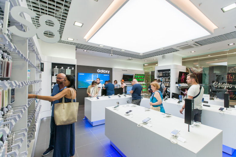 Новый фирменный магазин находится на первом этаже торгового центра Dana Mall. На 60 квадратных метрах расположена демонстрационная зона, где представлены флагманские продукты компании, среди которых смартфоны Samsung Galaxy S8|S8+ и телевизоры Samsung QLED, а также выделено пространство для консультаций со специалистами компании.
