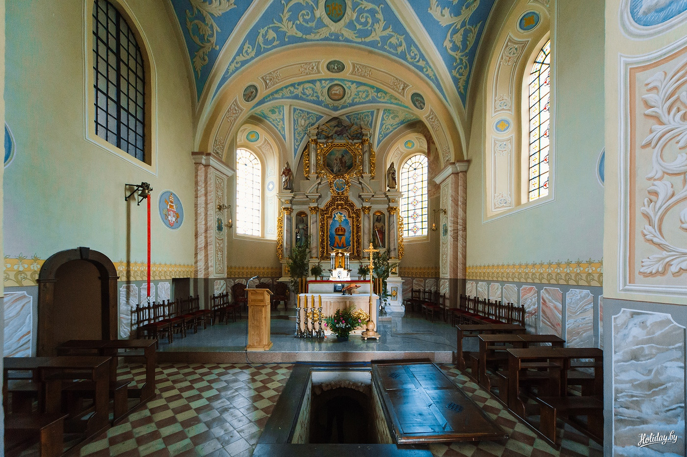 Специально для нас органистка исполнила несколько произведений, от чего посещение костёла в Камаях оставило сильное впечатление. В крипте костёла находятся захоронения ошмянских маршалков.