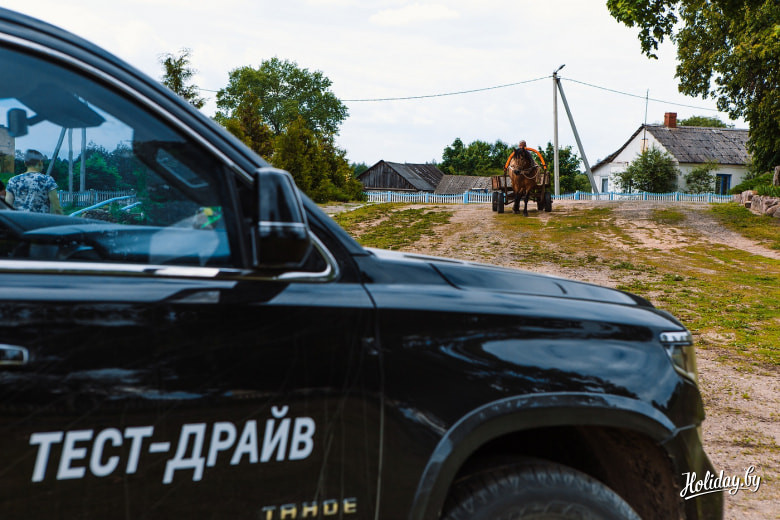 Дороги в белорусский Париж грунтовые, пыльные. Блестяще-хромированными проехать к местной Эйфелевой башне не вышло. Но даже в запылённом виде огромный Chevrolet Tahoe сумел привлечь внимание парижан и парижанок.
