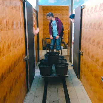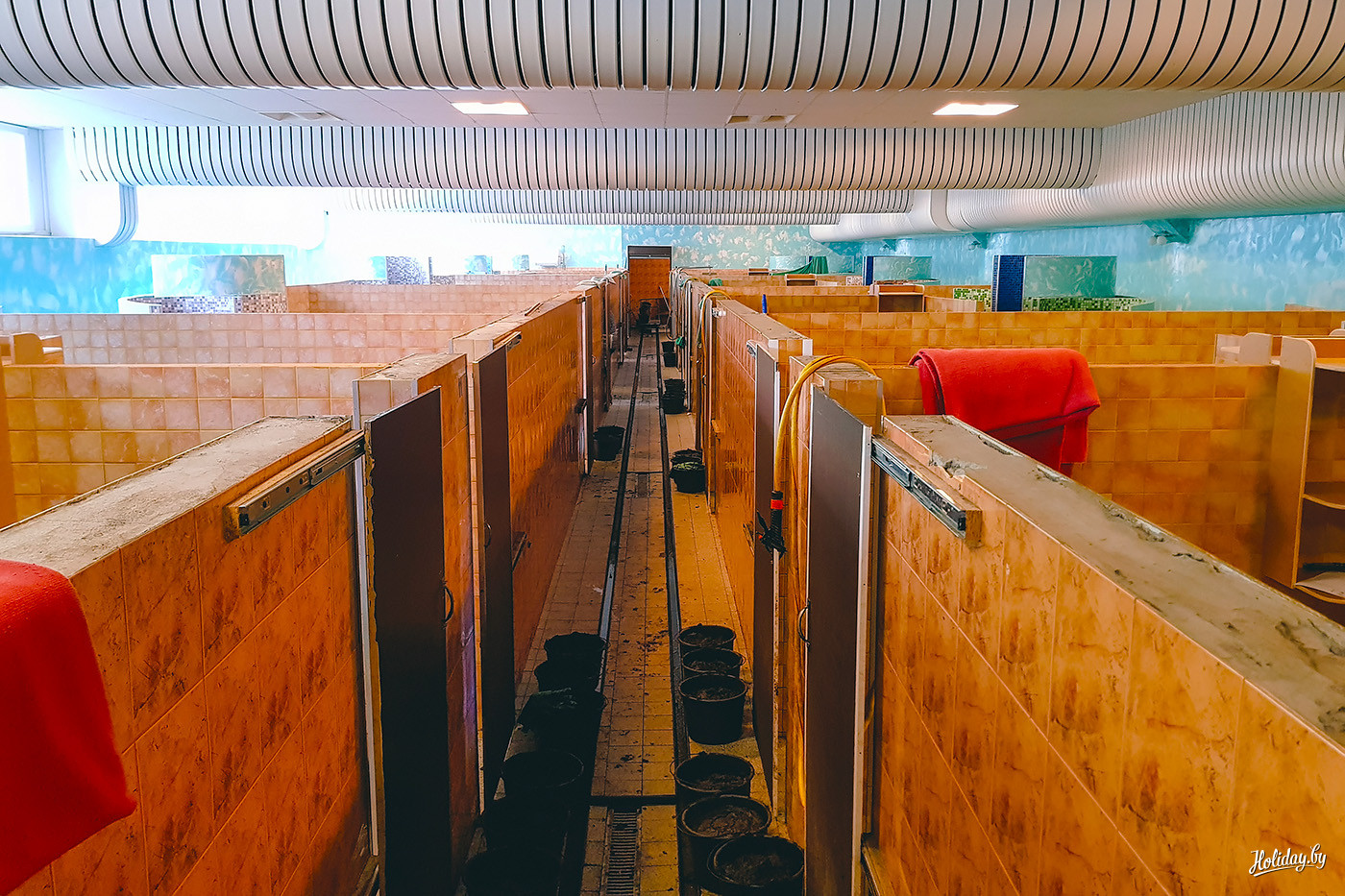 Пригодный для процедур торф залегает неподалёку от центра и находится за замком и под охраной. Его перевозят на склад в подвале санатория, где по транспортёру он поступает в помещение для обогащения его сероводородом. Звучит странно, но эта смрадная и грязная смесь – самое лучшее, что может сделать природа для человека.