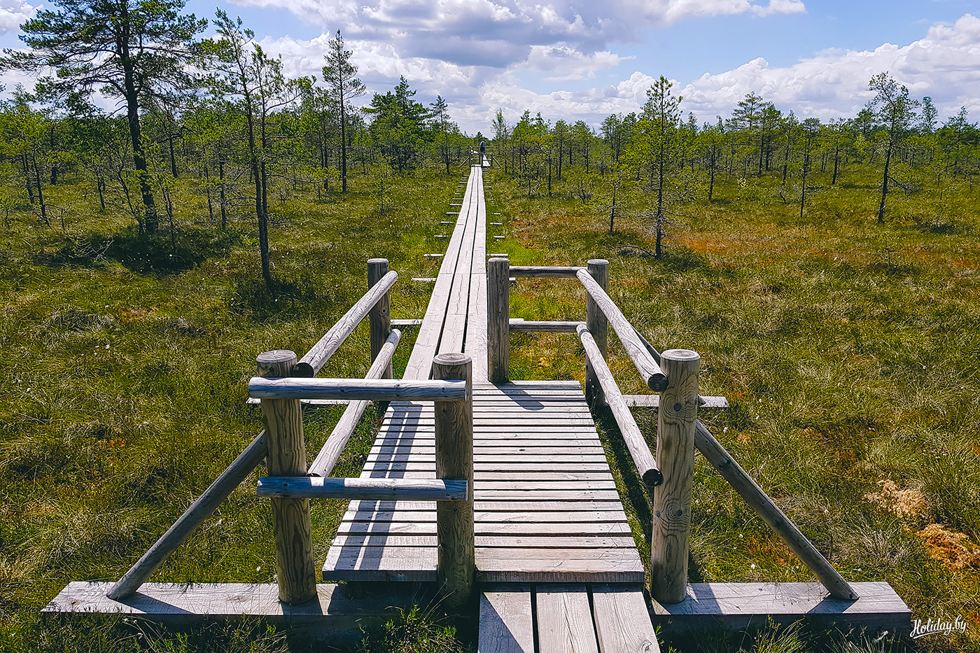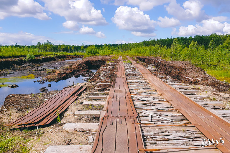 Наглядная карта-схема, которую выдают в любом из инфоцентров, поможет выбрать оптимальный маршрут и снабжена всеми необходимыми контактами. Мы не долго думали и отправились по большому кругу путешествовать по болоту. Всё же для белорусов это особенное место! Как говорит карта, мостки через Большое Кемерское болото простираются на 3,4 км пути.