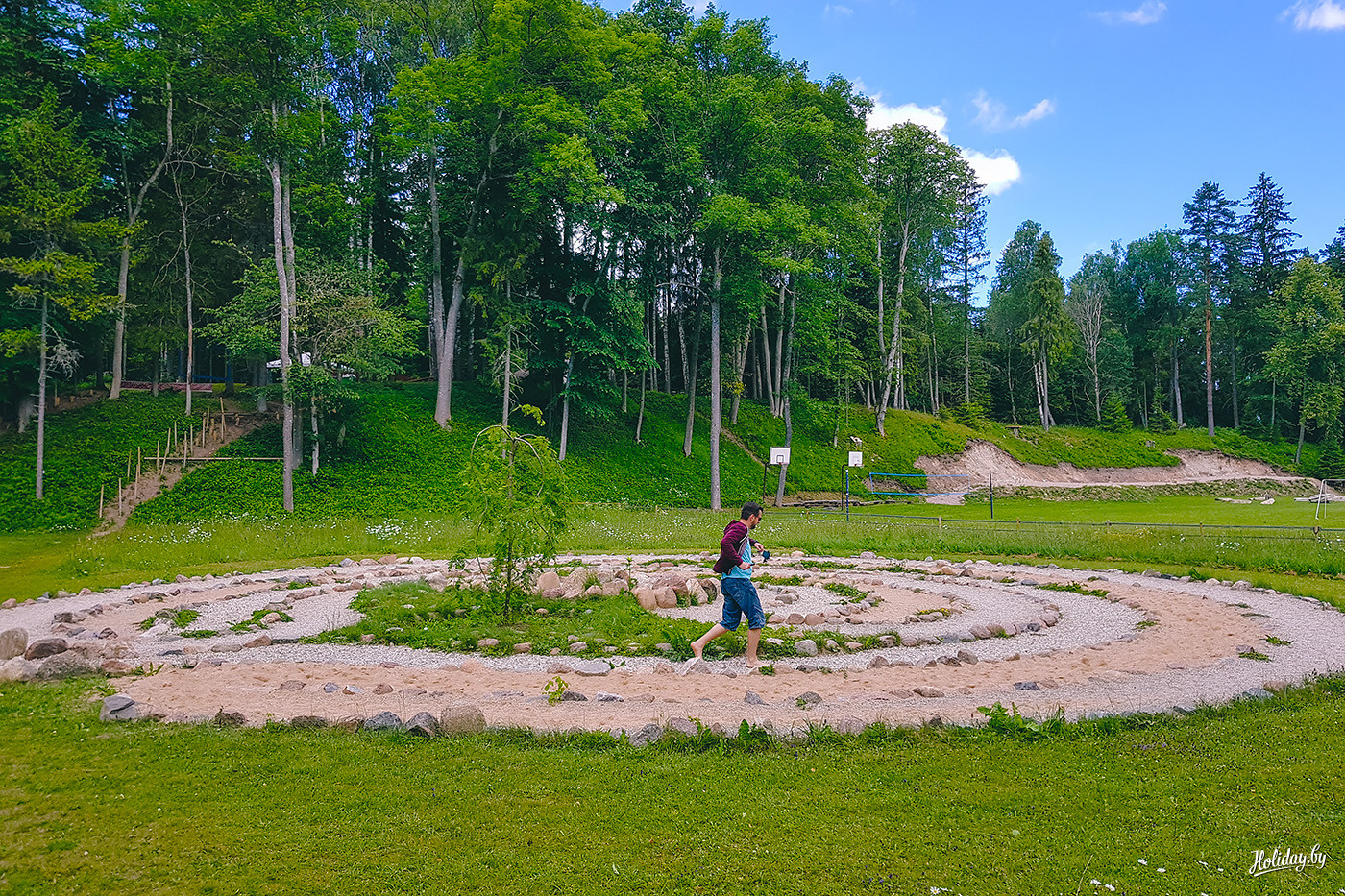 Лабиринт полностью выложен из острых камней. Скажу честно, с половины спирали я сошёл, чтобы хоть на чём-то дойти до финиша. Тот самый момент, когда хочется взять ноги в руки и не отпускать. Опять вода, затем мягкие пробки, кора и столбики над землёй. Чакры настолько широко открыты, что кажется ими можно дышать как ртом.