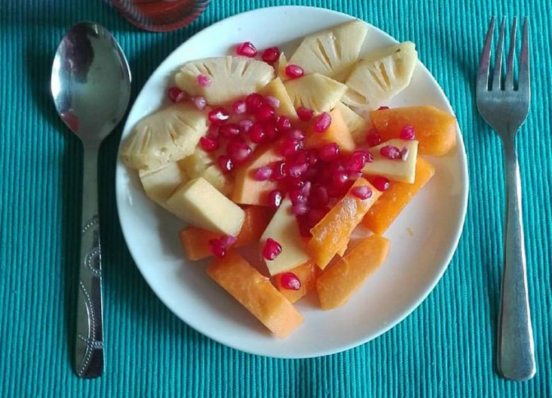Что дают на завтрак? Тарелку сочных, безумно вкусных фруктов. Кстати, сейчас сезон манго и ананасов. Их выращивают в собственном саду на территории отеля.