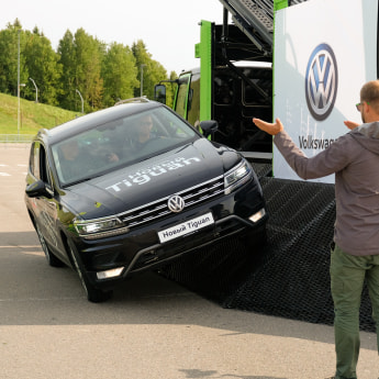 Надо отдать должное кроссоверу Volkswagen Tiguan – машина показала отличную геометрическую проходимость и возможность взбираться на крутые продольные и боковые уклоны. Не без помощи электронных ассистентов, надо понимать.