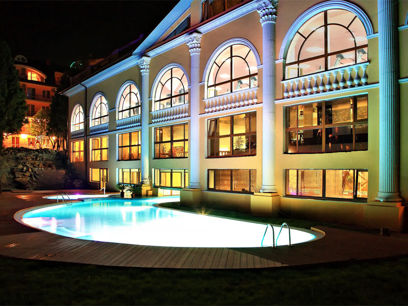 5. Санаторий "Женева" 4*, г. Трускавец – один из самых больших SPA центров площадью 7000 м2, в котором находятся 20 саун и 11 бассейнов, а также Welness центр, современный медицинский центр, рестораны, бары и многое другое. СПА-центр «Royal SPA & Wellness Center» радует разнообразием предоставляемых услуг и профессионализмом мастеров. Также санаторий предлагает своим гостям систему «Все включено». Пакет «ALL SPA» («Все включено») по доступной стоимости включает в себя: проживание + 3-разовое питание + посещение SPA-центра + базовое лечение.