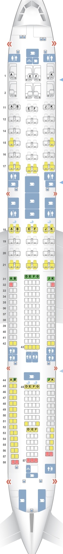 На схеме салона Airbus A340-600 может насчитываться от 380 до 440 мест, в зависимости от деления на классы. В целом, салону данной модели свойственна повышенная комфортность: кроме удобного расположения сидений, самолет является одним из лучших в плане звукоизоляции. Лучшие места в двухклассовом салоне — это G в 8-м ряду, А и К в 61-м ряду. Эти сиденья располагают широким пространством для ног и неограниченными в откидывании спинками, равно как и боковые места в 33-м, 34-м, 35-м, 36-м, 53-м, 54-м рядах, а также центральные сиденья 33-го и 34-го рядов. Тем же достоинством обладают места А, С, Н, К в 18-м ряду, места Н, К в 31-м ряду, А, С в 32-м ряду, а также 51-й ряд, кроме крайних сидений. При этом у этих кресел есть и небольшой недостаток: близость к камбузу или туалеты способна создать неприятные шумы, вызывающие дискомфорт у пассажиров. А вот крайних мест в 19-м, 32-м и 64-м рядах, а также трех мест последнего, 65-го ряда, стоит избегать: либо спинки этих сидений заблокированы, либо ограничено место для ног.