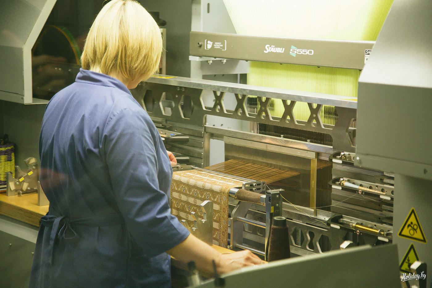 — Вы находитесь в уникальном месте. Здесь создается бренд республики! — сходу задает тон Лариса Игоревна, гид фабрики. — Когда в 2012 году президенту объяснили, что в мире не существует аналогов нашему продукту, он сразу подписал Государственную программу возрождения технологий и традиций изготовления Слуцких поясов. Разработка оборудования заняла более полугода, и сегодня ни одно производство не может похвастаться аналогичным станком. В основе компьютерной программы — образец ручной работы XVIII века. Брак исключен.