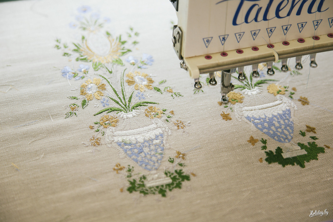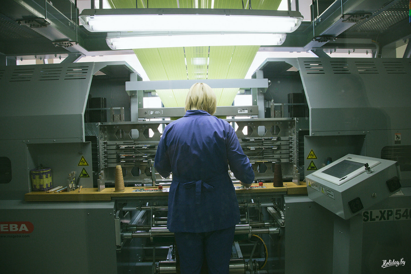 …В коридорах разлито что-то такое умиротворяющее и безмятежное. Солнечно. Тихо. Свободный доступ в производственные цеха (но с небольшой оговоркой: по технике безопасности экскурсию нужно предварительно согласовывать с руководством фабрики). Рассматриваю станки, болтаем с Тамарой. Ей 29, по первому образованию — техник-технолог. Тамару точно никто не забирал «ад родных ніў, ад роднай хаты», девушка пришла работать сама и, кажется, вполне довольна своей новой специальностью.