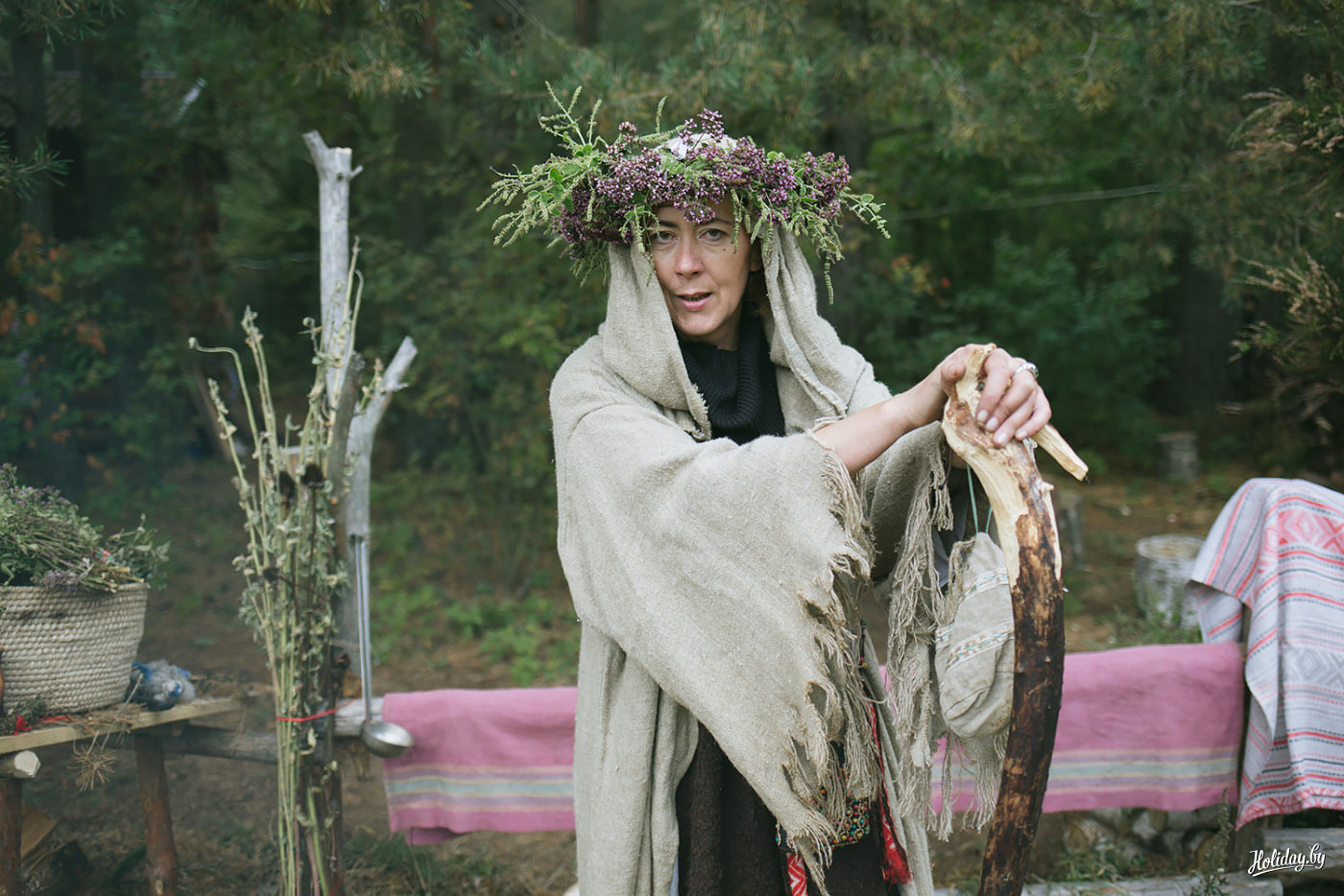 Только я не советую сворачивать с обозначенных аллей: не то случайно выйдете к сказочной избушке, где проживает очаровательная травница Анна, а по совместительству — местная ворожея и экскурсовод сада. Если серьезно, ее увлекательная анимация — еще одна весомая причина посетить праздник. Вместе с Аней туристы с азартом водят хороводы, готовят отвары, едят волшебные ягоды, а после фотографируются на крыльце избушки в наряде отшельников. Лично мне травница нагадала что-то такое туманное, многозначительное и неоднозначное: ну да, приблизительно так я и представляла свое будущее.