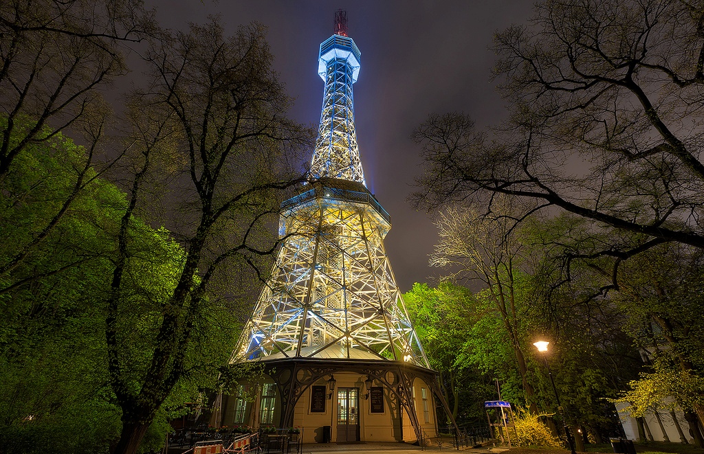 Петршинская башня, которая является самой высокой точкой Праги. Её ещё называют Эйфелевой башней, только пражской, поскольку она действительно напоминает очертаниями свою французскую коллегу. Подняться на смотровые площадки можно либо на платном лифте, либо по лестнице, которая огибает башню по спирали.