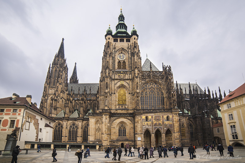 Башня Кафедрального Собора святого Вита, наиболее знаменитого в Праге, который считается самым большим из её многочисленных соборов. Смотровая площадка расположена на южной башне, которая в высоту достигает 96,5 метров. Туда ведут 300 ступеней, и далеко не каждый может их одолеть.