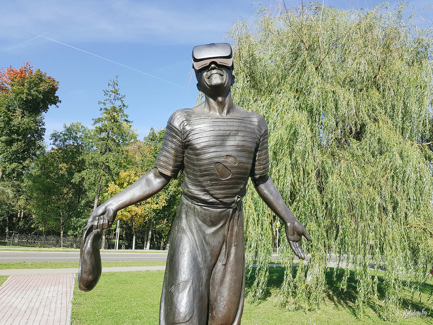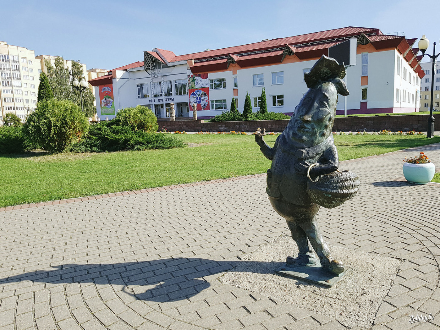 — Это шкловский огурец, его надо гладить. Пусть не замок, зато скульптура! — общительная собеседница пытается увлечь нас местными достопримечательностями. Как под гипнозом послушно трём в указанном месте — а ведь жизнь нас к этому совсем не готовила.