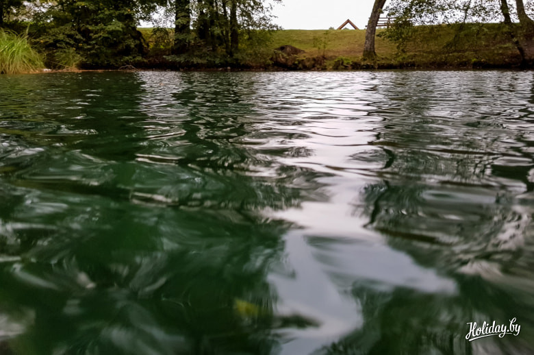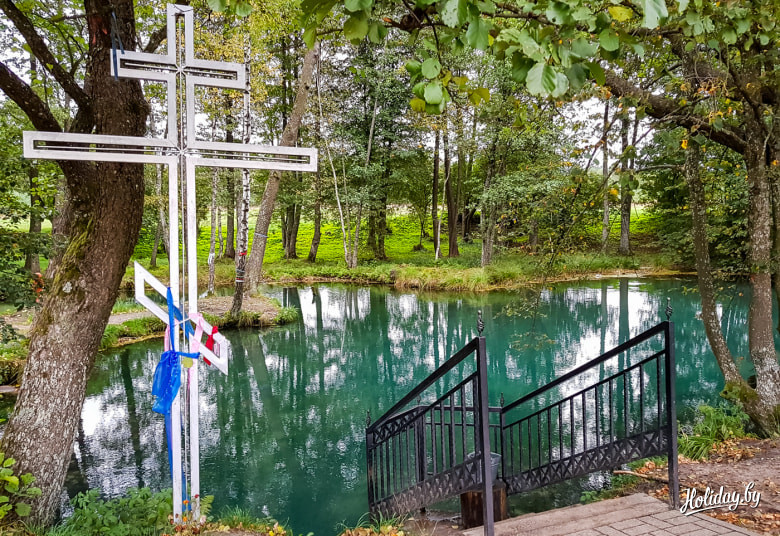 Около пяти тысяч кубометров ледяной воды в сутки на известняковом дне образует ванну, находящуюся в обрамлении деревьев. Табличка у источника говорит, что по данным института геохимии и геофизики АН Беларуси, может служить эталоном чистоты подземных вод. Это удивительно на фоне истории с закопанными и отселенными после аварии на ЧАЭС окрестными деревнями.
