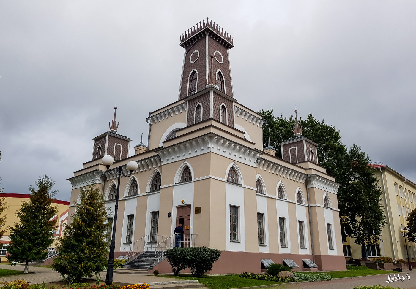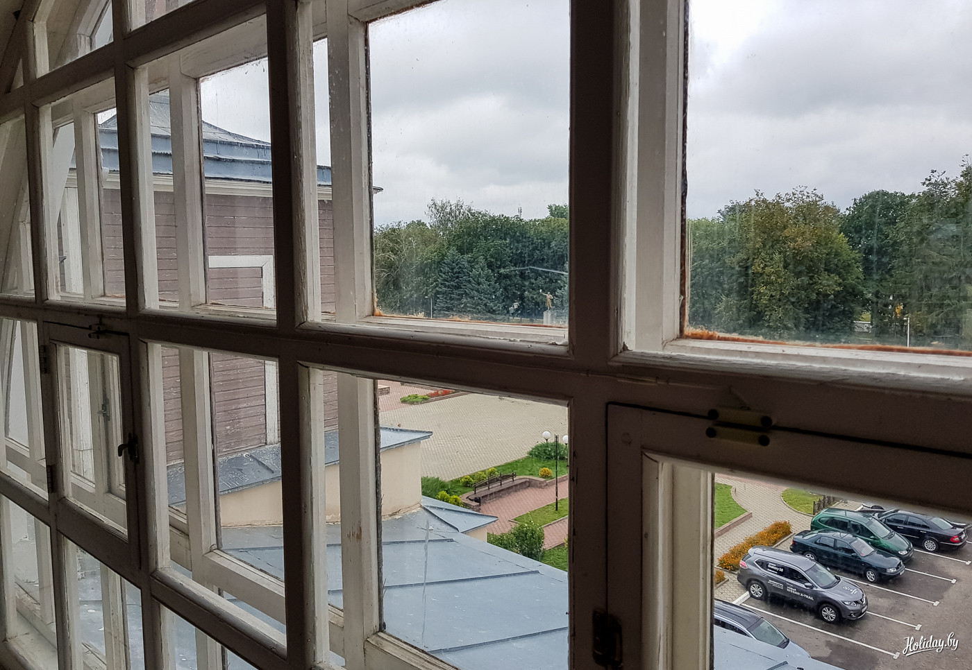 В самой церкви находится её точная копия. Надо сказать, что иконопись в районе очень богатая и самобытная. Об этом можно узнать в музее, который расположен в ещё одном “подарке городу” – городской ратуше. Я бы сказал, что это самая необычная ратуша в Беларуси. Много раз проезжая мимо, я хотел побывать в её музее и обязательно на башне. Вот день “Ч” настал!