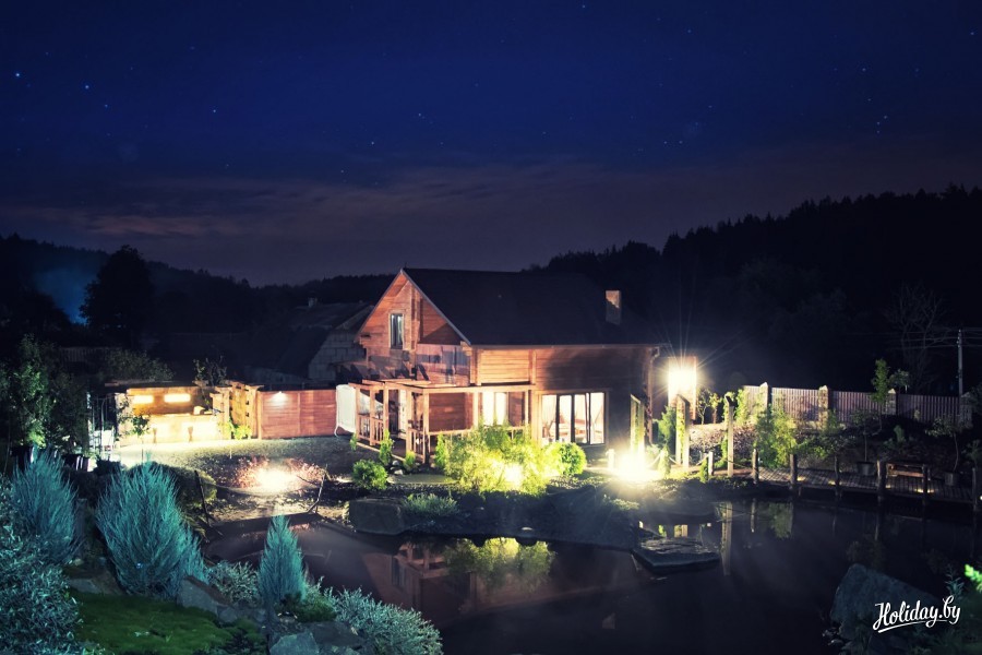 Усадьба обещает всем гостям теплый прием и замечательный отдых. Загородный дом в аренду находится в полукилометре от МКАД, в 5 км от аквапарка Лебяжий, 25 км от горнолыжного комплекса «Логойск» и в 30 км от комплекса «Силичи».